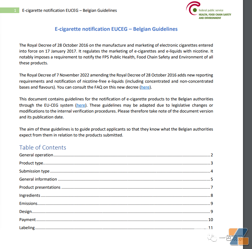 来自比利时卫生部消息,提到自2024年1月1日起,所有用于消费的电子雾化油都必须带有税标。