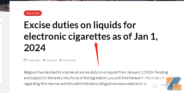今天看到一则消息,欧洲比利时表示自2024年1月1日起对电子雾化油征收消费税,这代表欧洲又多一个国家对电子雾化烟油收税,而我们所知道的,比如德国。