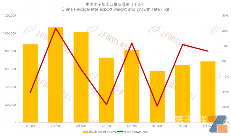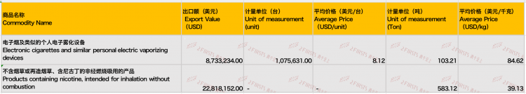 【两个至上快讯】根据中华人民共和国海关总署更新的贸易数据,两个至上统计了2023年8月中国出口到俄罗斯的电子烟数据。具体如下: