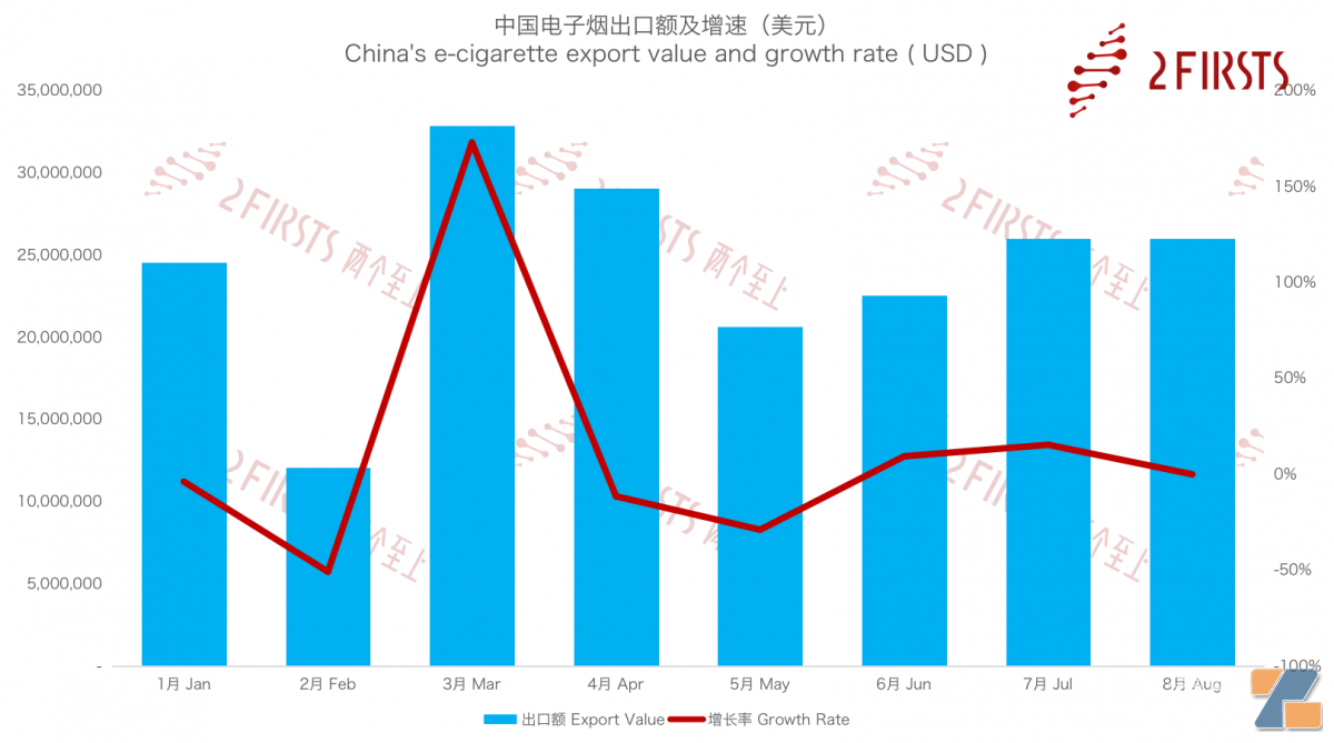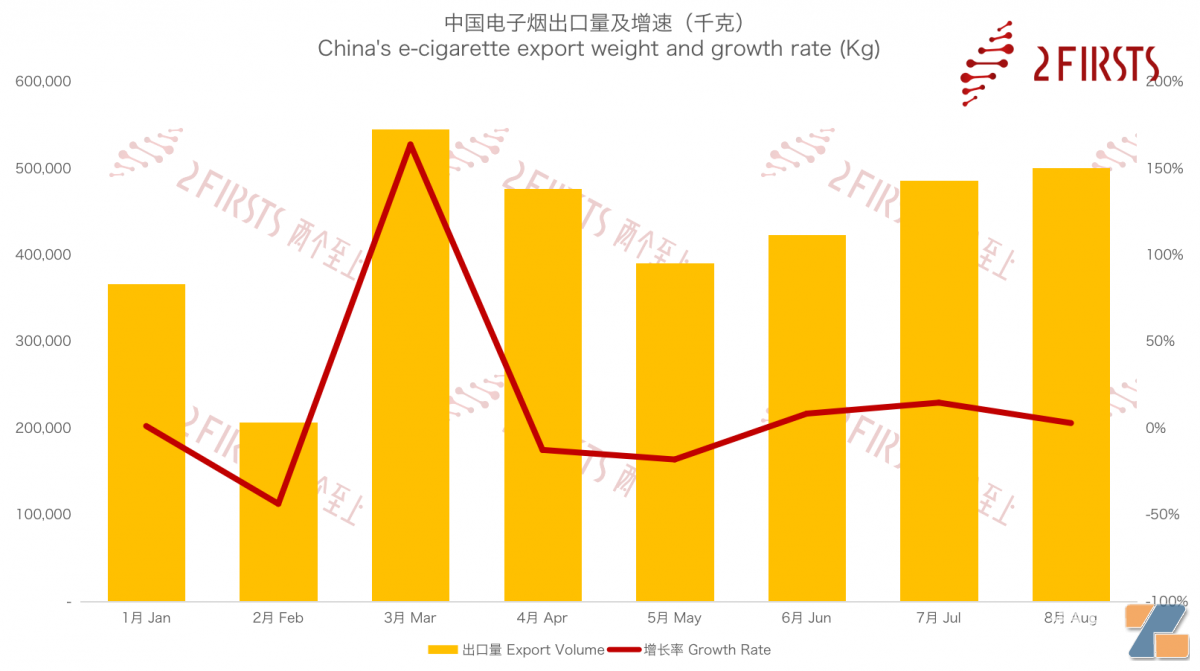 【两个至上快讯】根据中华人民共和国海关总署更新的贸易数据,两个至上统计了2023年8月中国出口到加拿大的电子烟数据。具体如下: