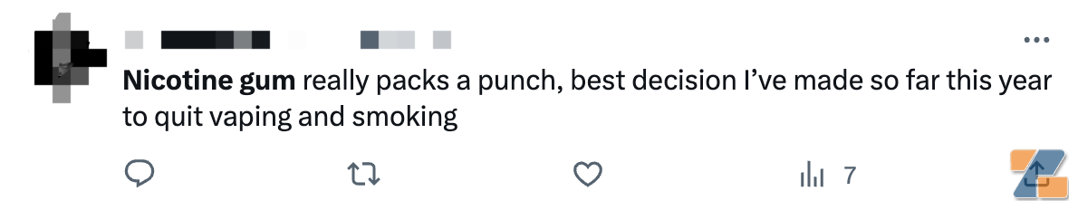 使用尼古丁口香糖的用户在Twitter上分享自己的使用体验|图源:Twitter