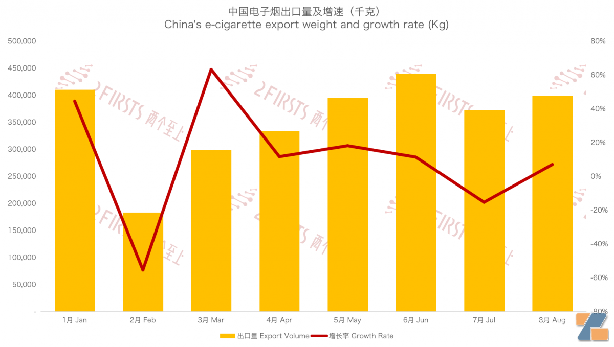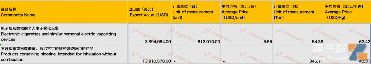 【两个至上快讯】根据中华人民共和国海关总署更新的贸易数据,两个至上统计了2023年8月中国出口到阿联酋的电子烟数据。具体如下: