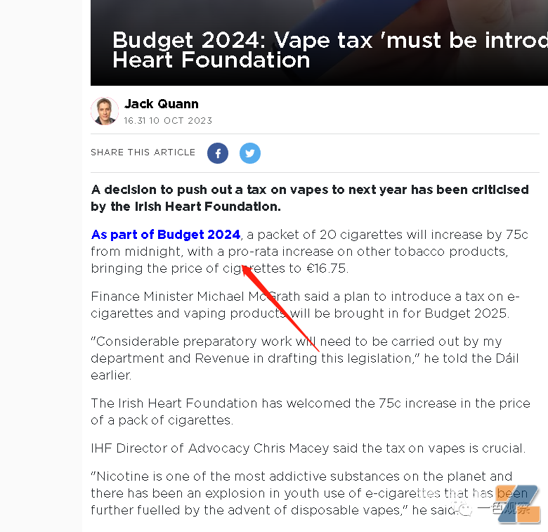 从东欧拉脱维亚,到今天看到的西欧爱尔兰,也开始要收电子雾化税。