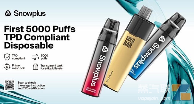 SnowPlus将在英国推出两款5000口一次性电子烟,值得注意的是,其称产品符合欧洲烟草产品指令(TPD)标准。