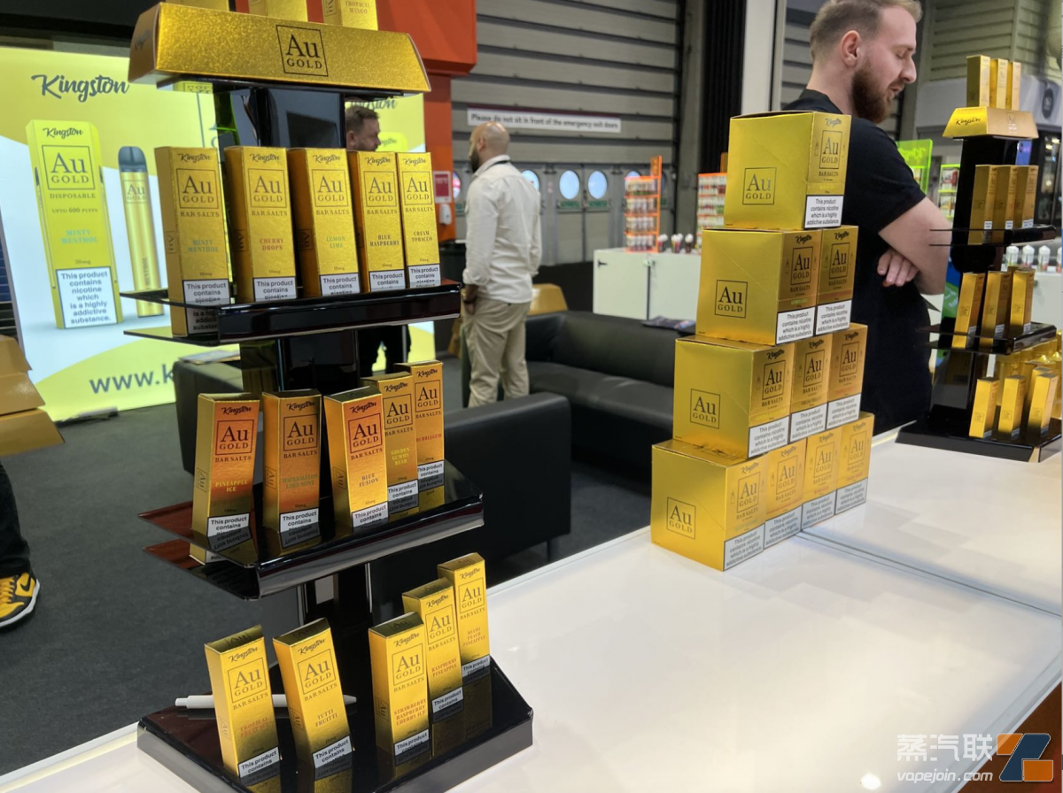 【两个至上发自伯明翰】10月27日至28日,两个至上在英国电子烟展会上发现,多个品牌推出了金色包装的电子烟产品,外形酷似黄灿灿的金条,现场弥漫着一股浓浓的"土豪风"。