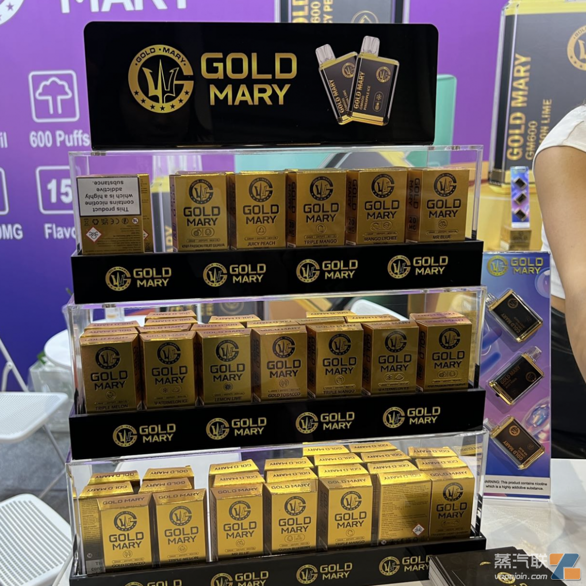 展会现场,两个至上发现,AU GOLD、GOLD MARY等多家品牌的电子烟设计几乎和知名一次性电子烟品牌GOLD BAR相同,都采用了“金条”外形。