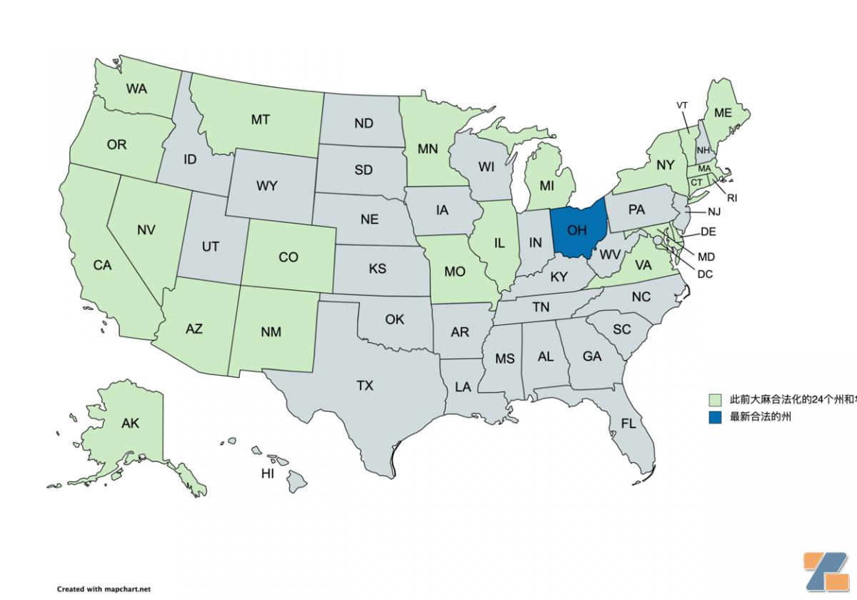 近日,俄亥俄州的选民批准了一项使娱乐性大麻合法化的选举提议,使得其成为美国第24个采纳该法案的州。