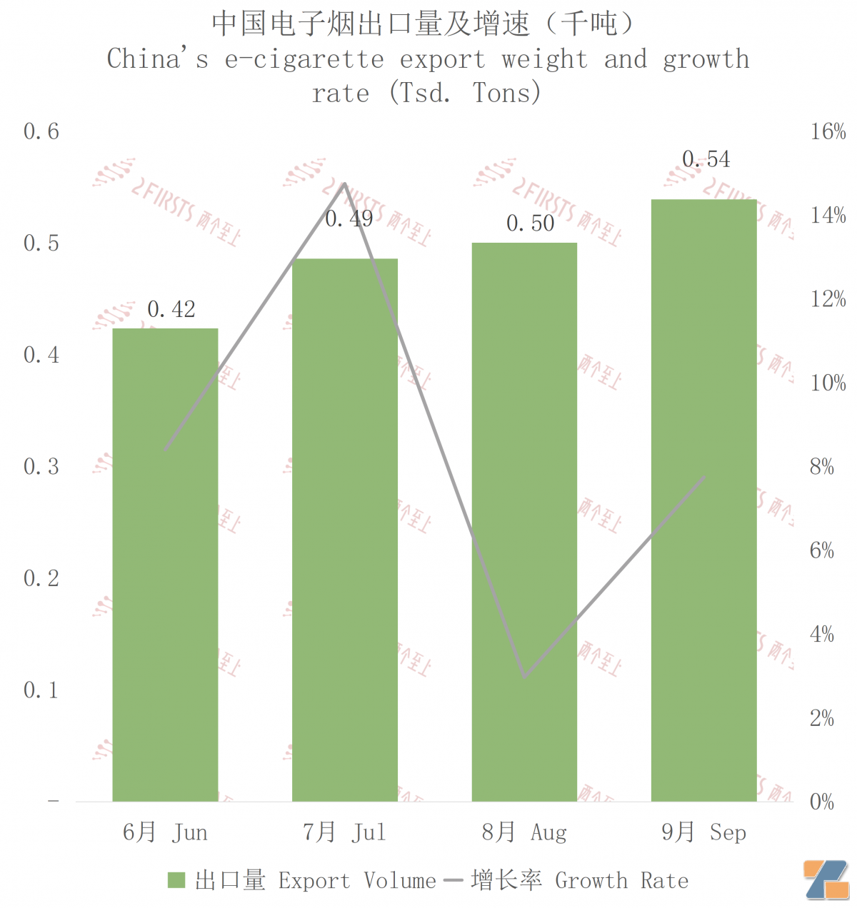 【两个至上快讯】根据中华人民共和国海关总署更新的贸易数据,两个至上统计了2023年9月中国出口到加拿大的电子烟数据。具体如下: