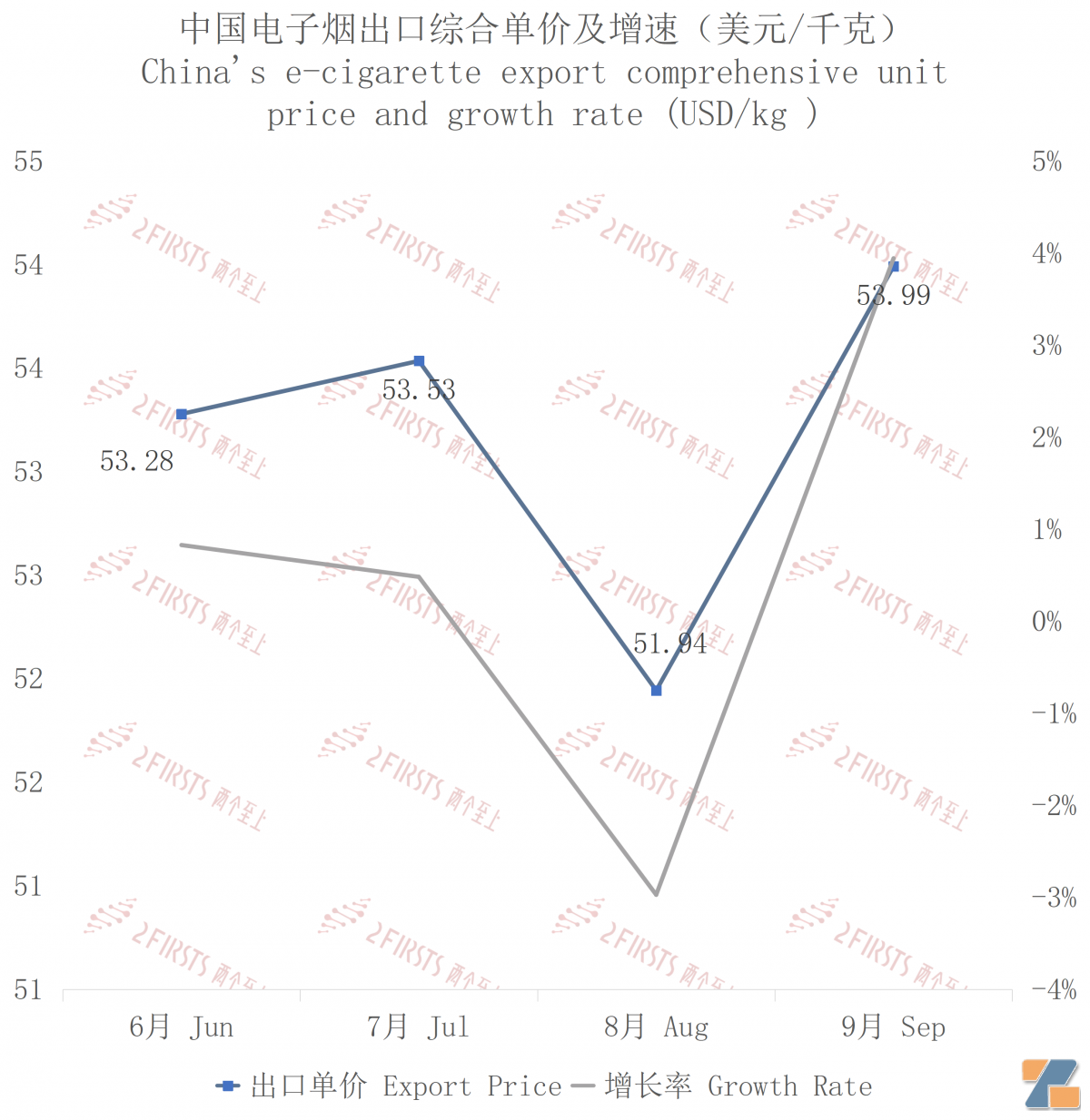 出口单价约为 54 美元/千克,环比增长3.94%,同比下降6.68%;“电子烟及类似的个人电子雾化设备”平均价格为4.11美元/台。