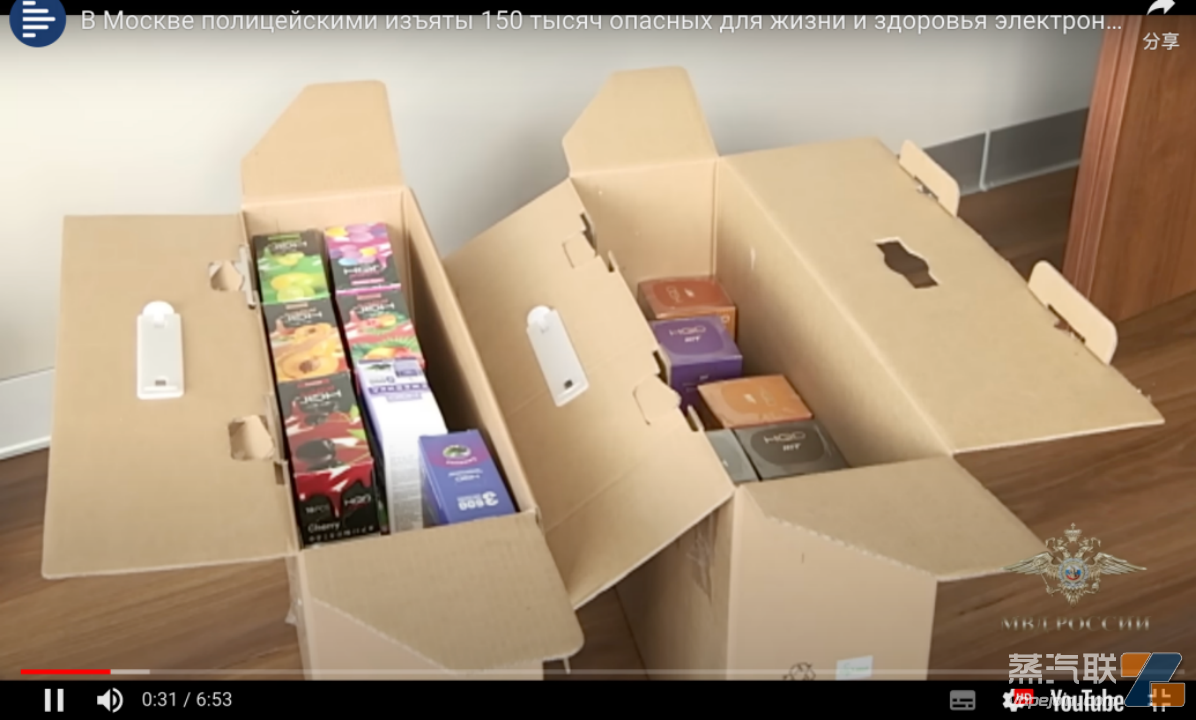 根据俄罗斯媒体mvdmedia的报道,莫斯科警方成功查获了15万支非法一次性电子烟,这些被扣押的产品的部分外包装上标有“HQD”的字样。|图源:mvdmedia