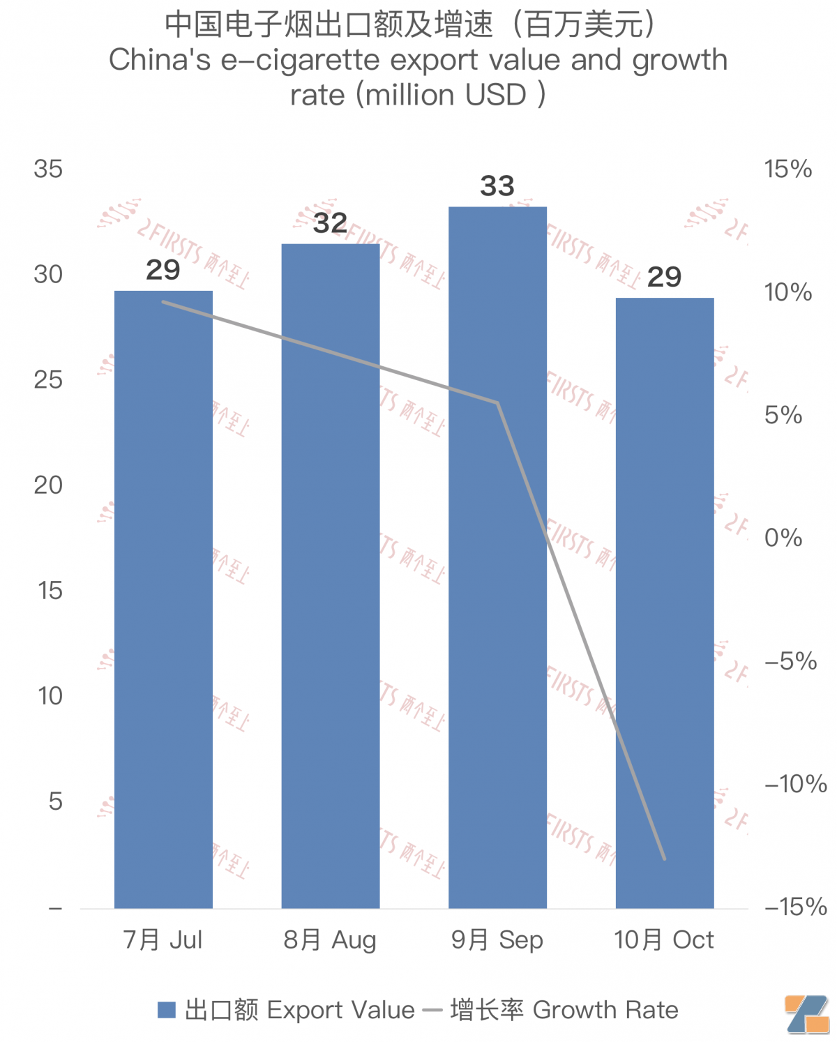2022年10月中国向俄罗斯出口的电子烟达到2898万美元|图源:两个至上(蒋明希制图)