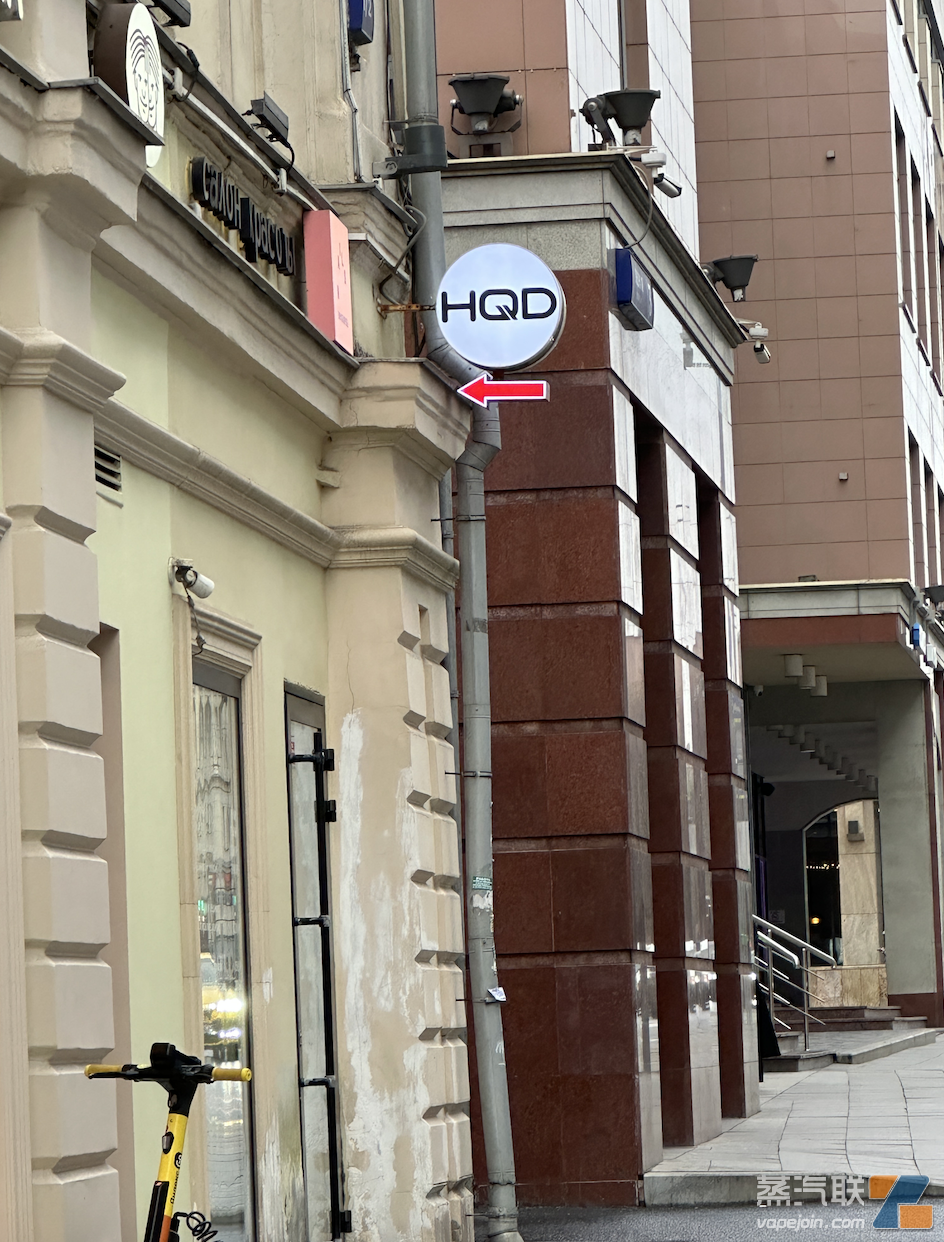莫斯科街头,有电子烟店挂着“HQD”的招牌吸引客户|图源:两个至上