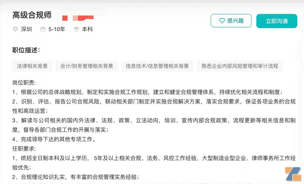 日前,在国内某招聘网站上,两个至上发现HQD正在招聘“高级合规师”一职。该职位要求根据公司总体战略规划,制定和实施合规工作规划,同时需要解读与公司相关的国内外法律、法规、政策、立法动向,进行培训、宣传内部合规政策、更新流程等相关信息和制度,督导各部门合规工作的开展与落实。