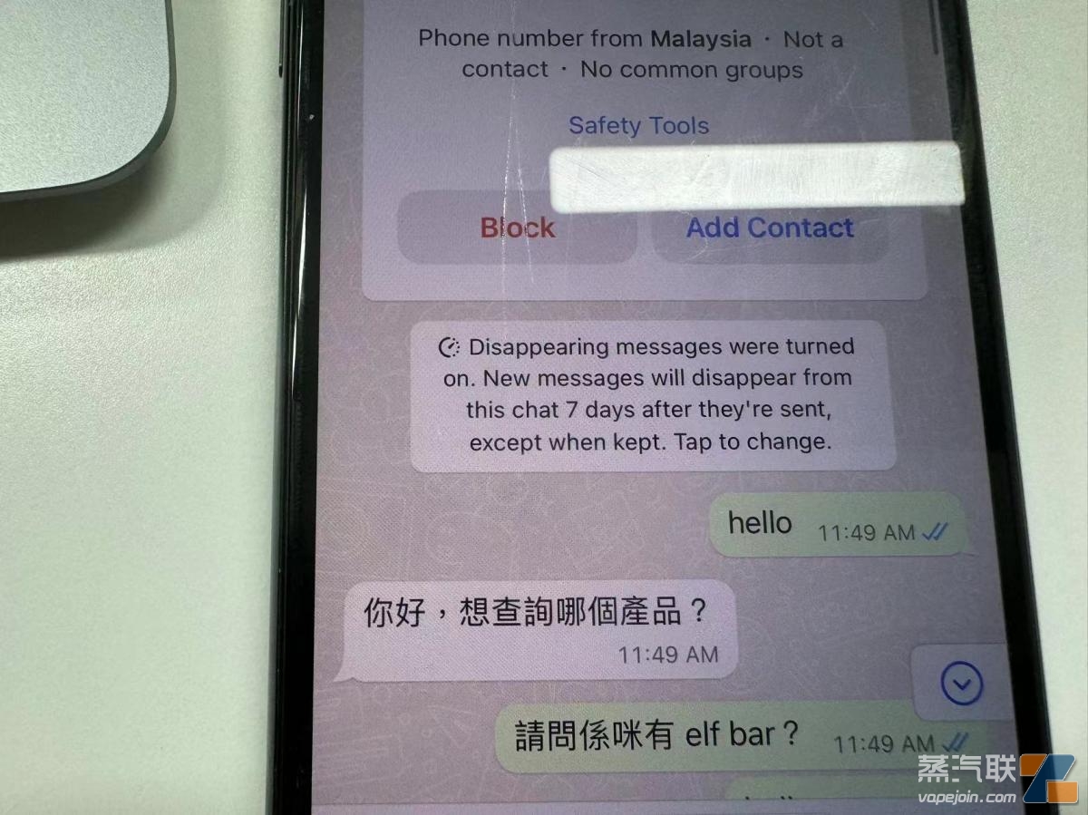 为最大程度保护自身隐私,一卖家将与客户沟通的即时聊天程序账号设置成了“消息发送七天后将自动消失。账号亦用马来西亚手机号注册|图源:2FIRSTS