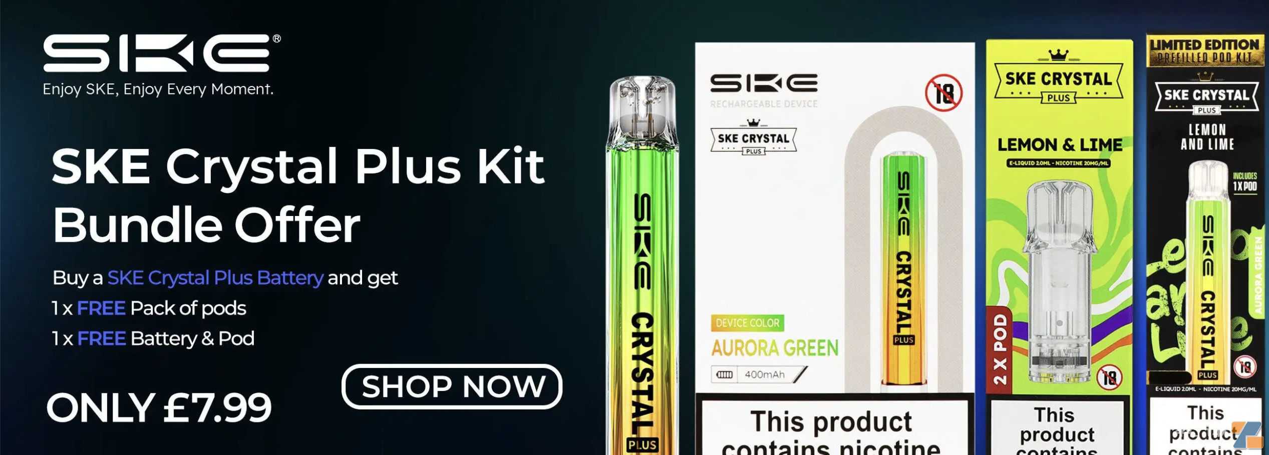 SKE Crystal在英国在线商店推广换弹式产品|图源:Vape UK