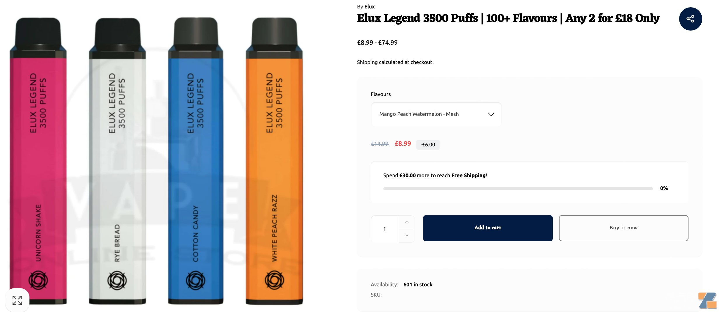 Elux Legend 3500 puffs售价约为9英镑|图源:购物网站截图