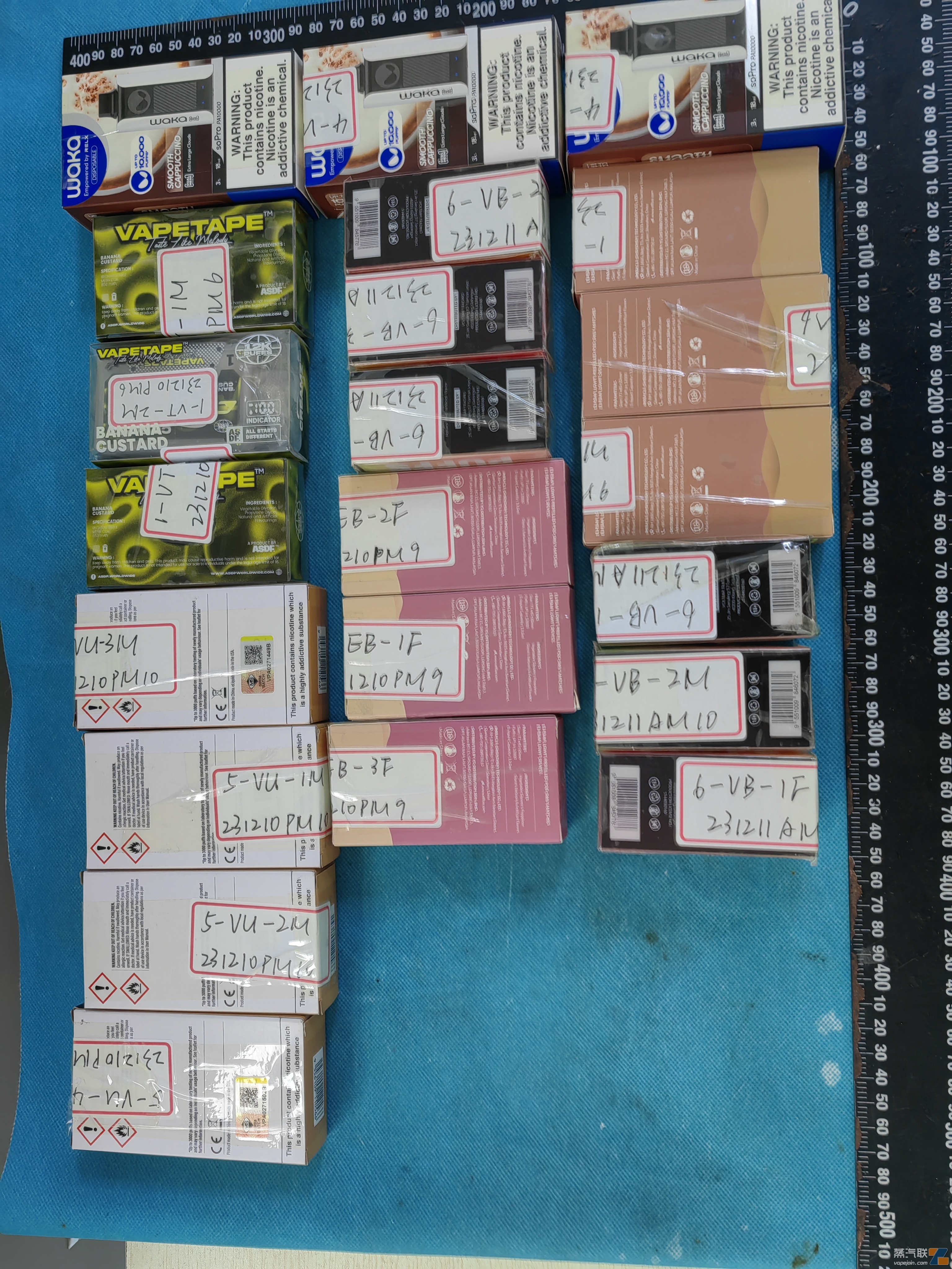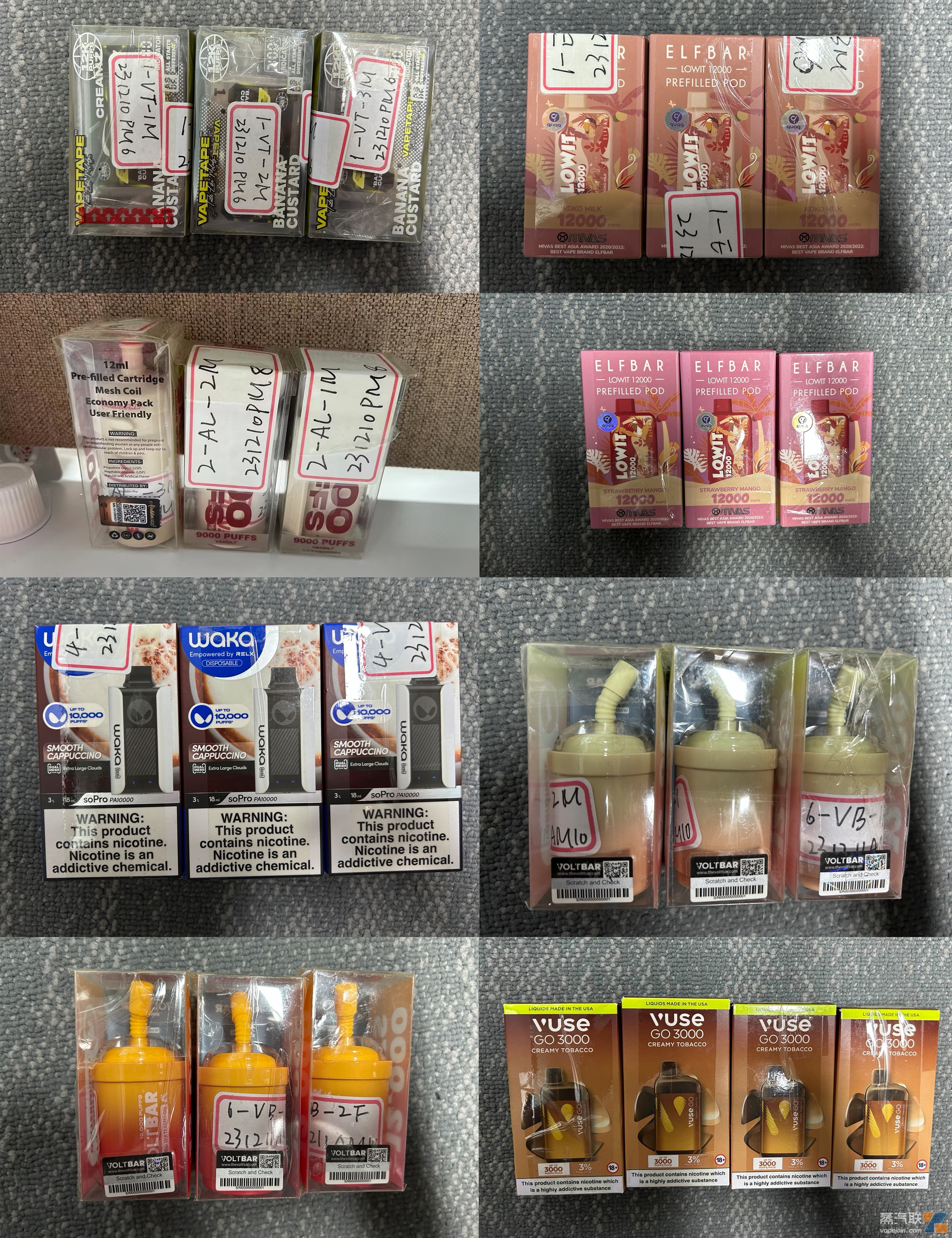 本次调研共计走访店铺二十余家,最终在6家店随机采购了8款当地市场主流品牌的电子烟。这些产品包装上分别印有VOLTBAR、ELFBAR LOWIT、WAKA、VUSE、Aladdin、VapeTape字样。其中,为明确丁二酮与奶味的相关性,8款产品中6款为奶味电子烟,而另外2款为水果口味电子烟。为满足成分检测的最低限烟油量(30ml),每一款产品购买3-4支。采购完成后,2FIRSTS当场将所购样品编号封存,并随后送至第三方检测公司中科检测技术服务(广州)股份有限公司。