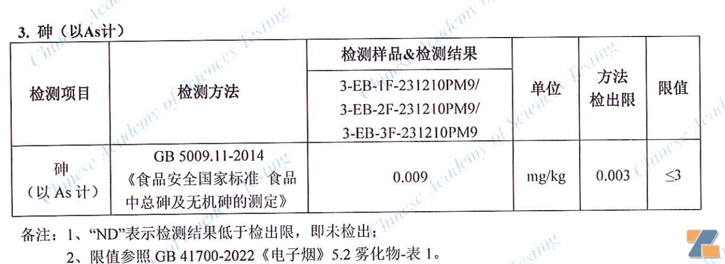 第三组产品砷(As)检测结果,图源:检测报告截图