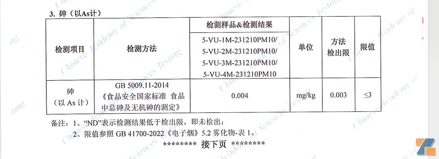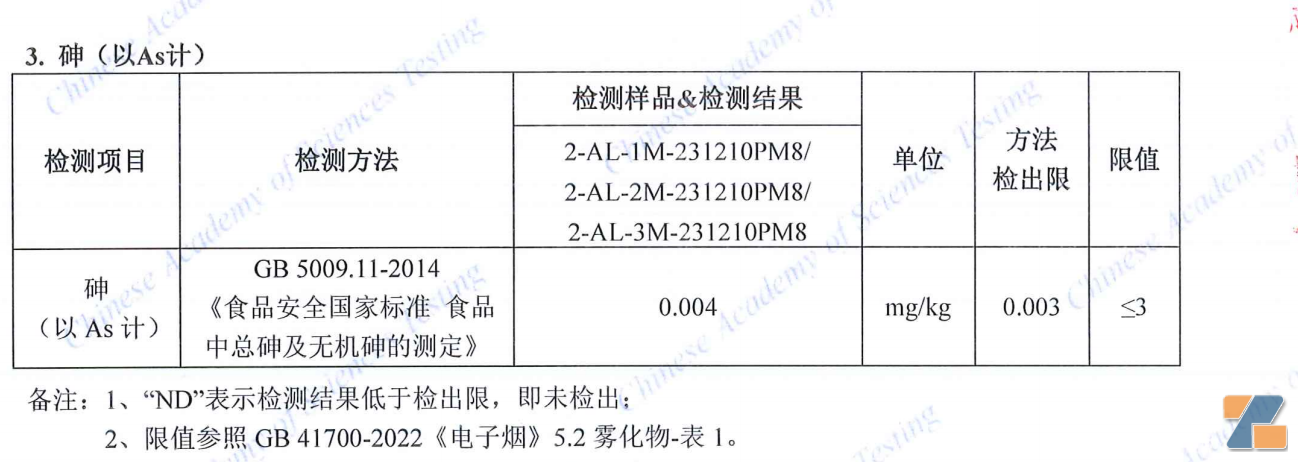 第五组产品砷(As)检测结果,图源:检测报告截图