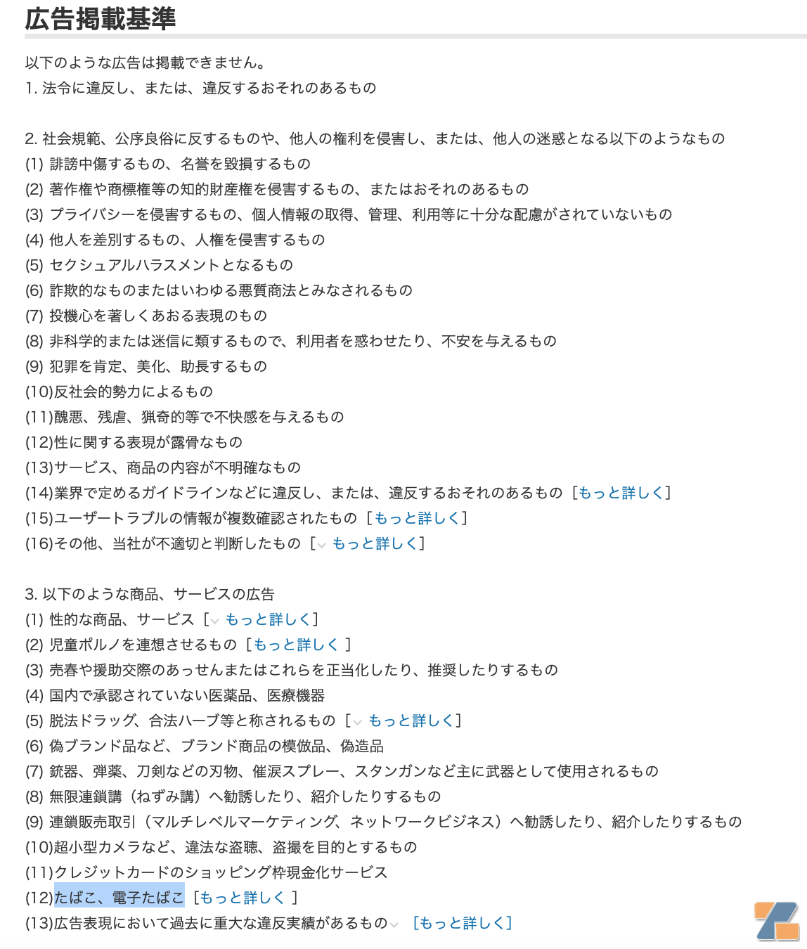 现行的雅虎广告刊登标准,不允许刊载烟草及电子烟草产品|图源:官网截图